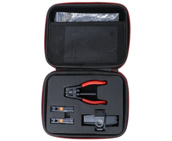 The FTK01 kit includes FTTR fiber termination tools (optical cable stripper, coating stripper, and fiber cutter) and is designed to be used with a field-mountable connector (FMC2105). This kit does not require special crimping tools or live devices, allowing for simple and efficient fiber termination on-site. FTK01 is an ideal solution for FTTx home connections, FTTR indoor optical networks, and ONU installations.