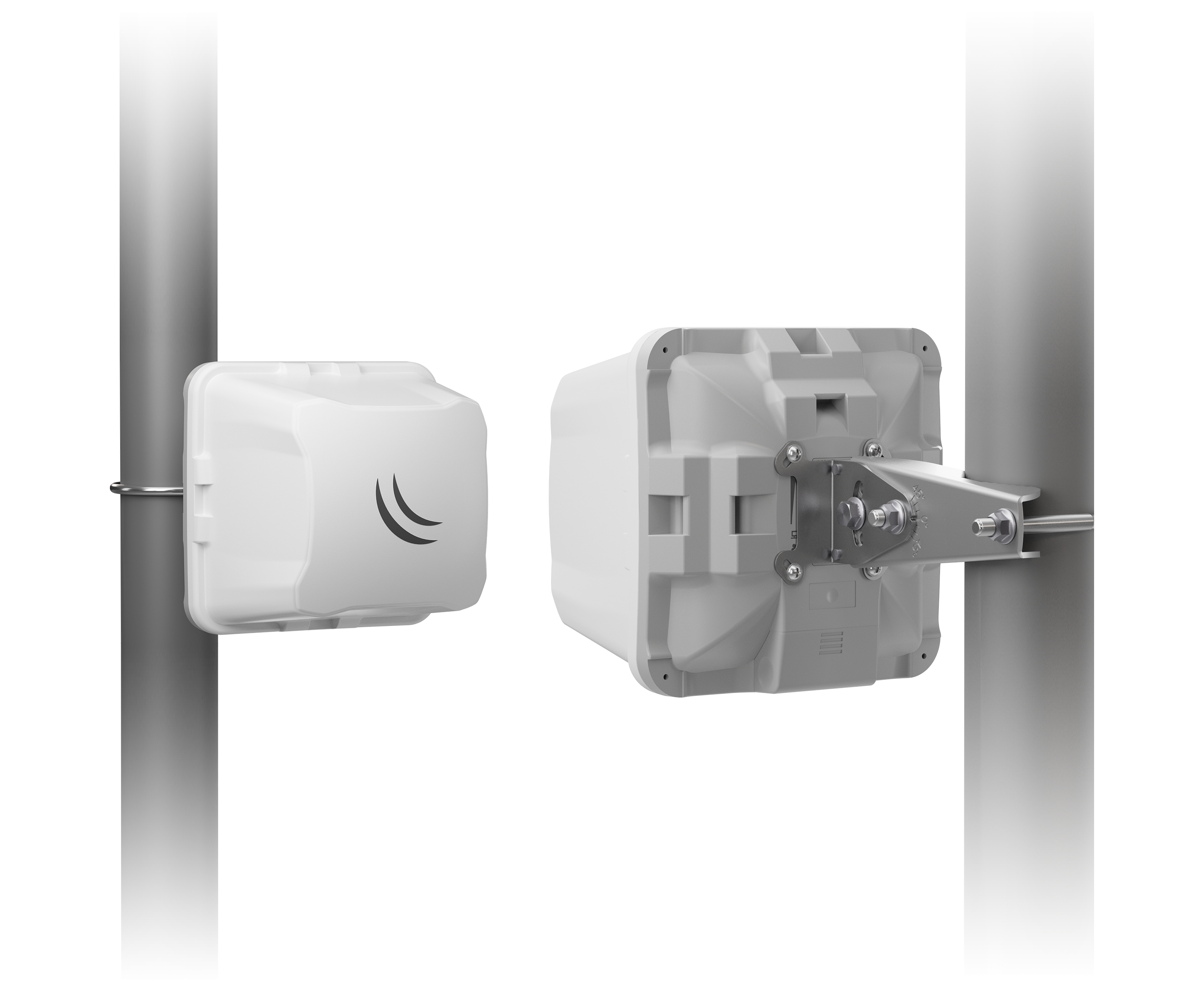 It can easily cover a distance of 800 meters and reach fiber-like speed. The Сube form-factor has been designed with function and durability in mind. And it attracts less unwanted attention due to its size and shape. The box includes two Cube 60G ac devices that are already paired together, power supplies, PoE injectors and mounting kits for both devices.
